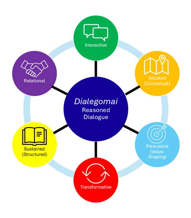 In short, dialegomai in the New Testament describes an educational model grounded in dialogue, persuasion, and reasoning toward truth, making it a powerful paradigm for teaching and education today. In terms of learning theory, dialegomai anticipates what modern frameworks call active learning or transformative dialogue. It treats learners as co-investigators, uses real-life concerns as entry points, and views education as a process of reasoning toward conviction and change.